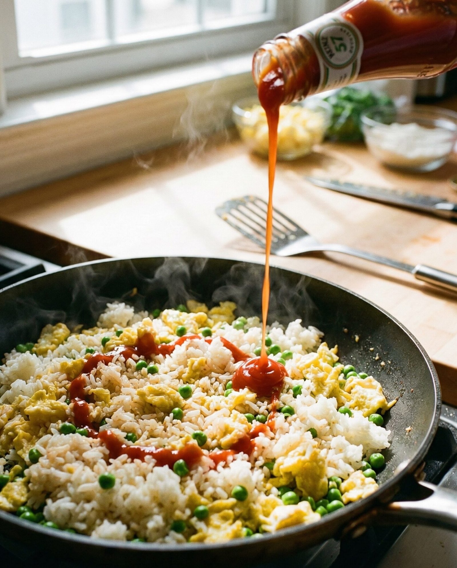 Ketchup Fried Rice is a simple, flavorful dish made with everyday ingredients—garlic, eggs, green peas, and, of course, ketchup. Unlike traditional fried rice, this recipe skips soy sauce entirely, offering a sweet-savory twist that’s quick, comforting, and budget-friendly.