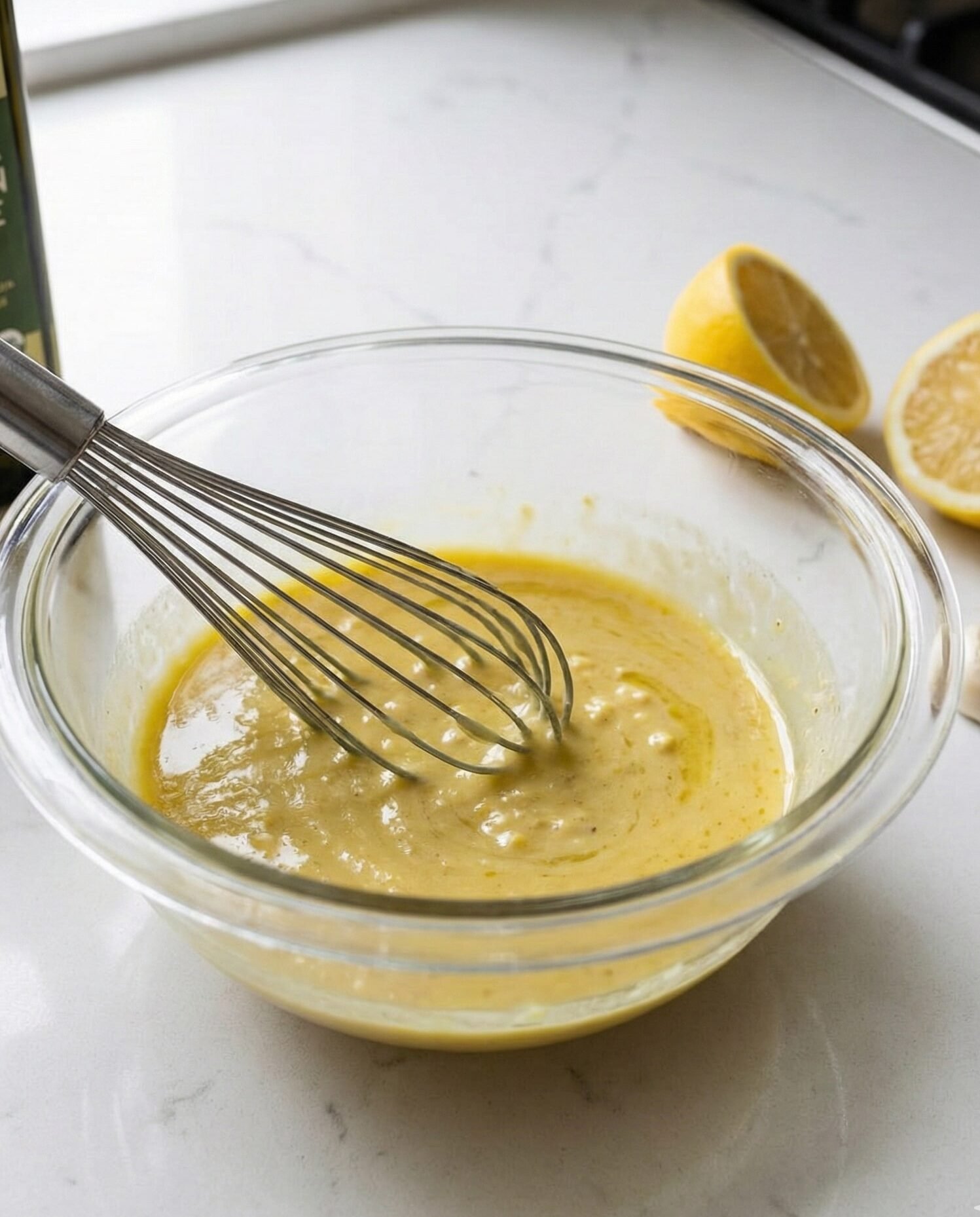 - Make the dressing: Whisk mustard, lemon juice, garlic, salt, pepper, Aleppo pepper, and sumac. Drizzle in olive oil while whisking until combined.