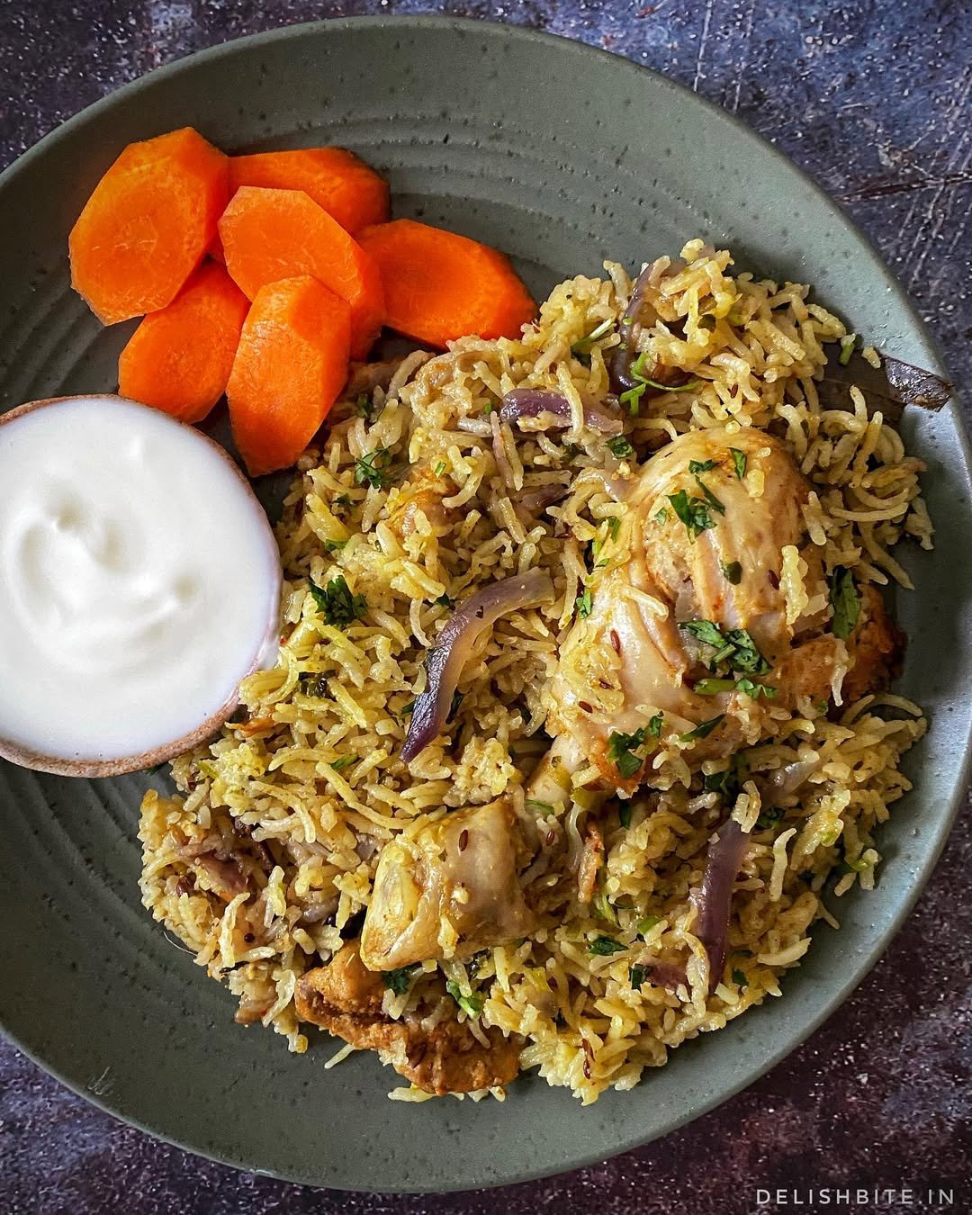 Once done, open the lid and marvel at your beautiful pulao! Every rice grain should be long, separate, and full of aroma. Notice how the chicken and potatoes nestle perfectly into the fluffy rice.